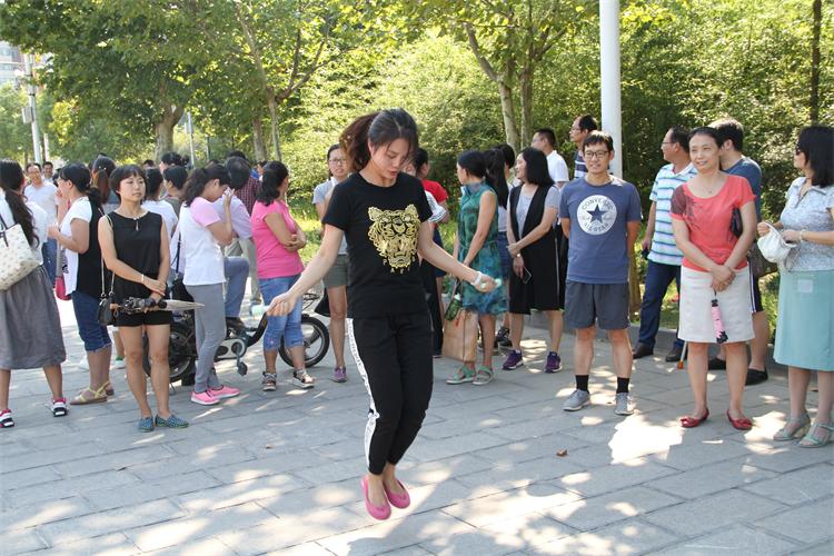为丰富我院广大教职工的文化娱乐生活,促进学院发展与传统节日文化相融合,开展省级文明单位创建,9月8日下午,院工会在图书馆前广场举办了教职工迎中秋跳绳比赛,17个分工会近七百名教职工参加比赛。