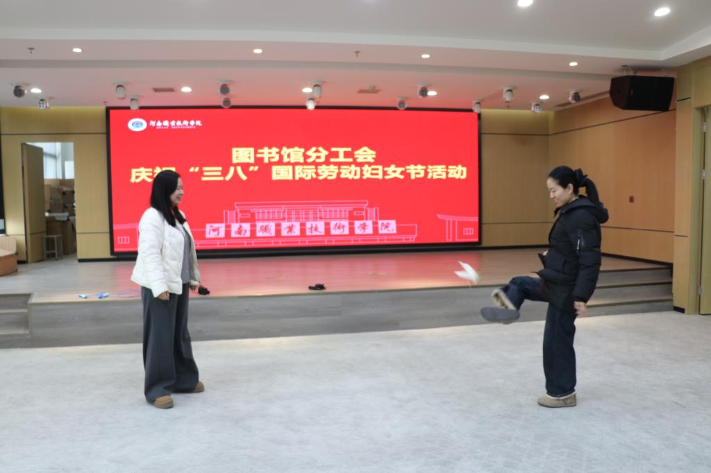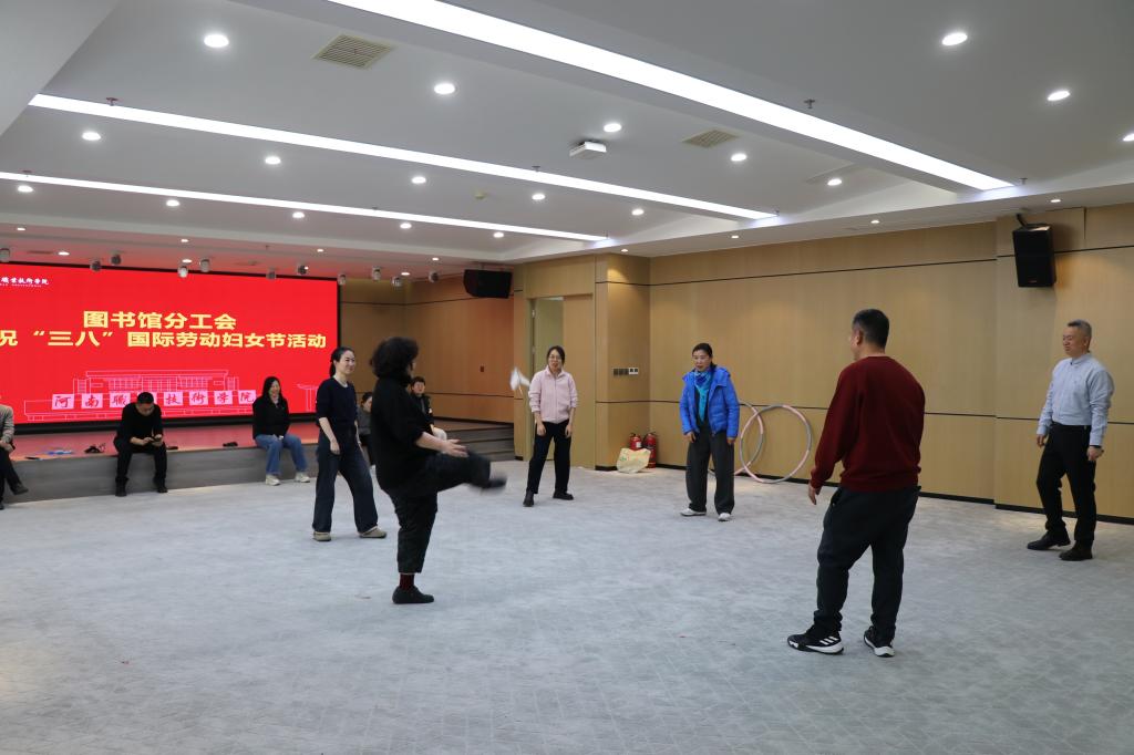 春和景明,芳华绽放。在“三八”国际劳动妇女节来临之际,为丰富图书馆女教职工的业余文化生活,缓解工作压力,增进同事间的凝聚力,3月5日,图书馆分工会响应学院工会号召,精心组织开展庆祝“三八”国际劳动妇女节踢毽子活动,全体女教职工积极参与,共庆节日。