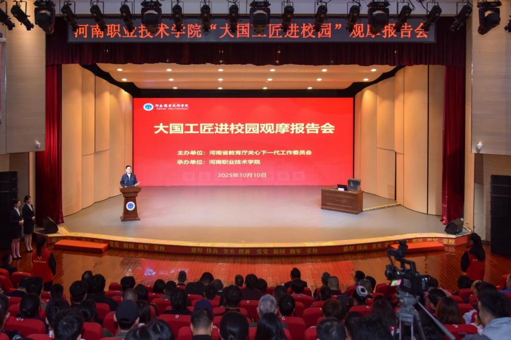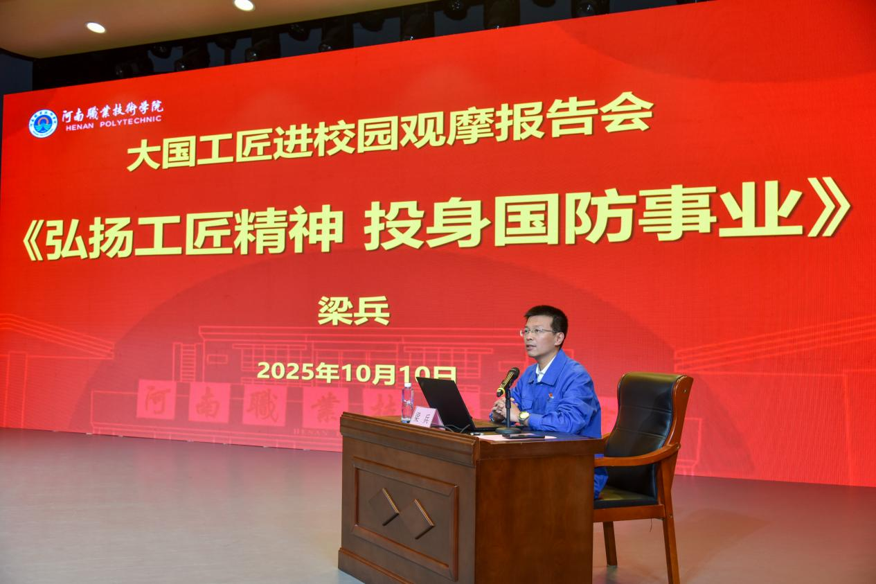 为深入贯彻落实国家关于大力发展现代职业教育、培育大批高素质技术技能人才的战略部署,深刻诠释“劳动光荣、技能宝贵、创造伟大”的时代风尚,10月10日下午,河南职业技术学院隆重举行“大国工匠进校园”观摩报告会。本次活动特邀全国技术能手、全国劳动模范、大国工匠梁兵大师走进校园,为来自全省近四十所职业院校的四百余名师生带来了一场震撼心灵的匠心盛宴与精神洗礼。