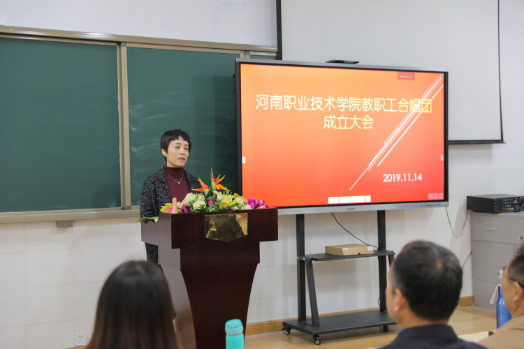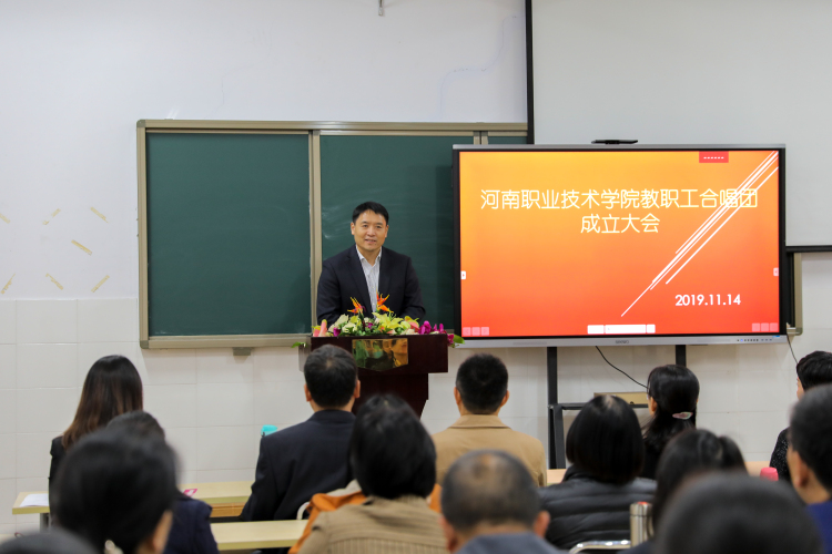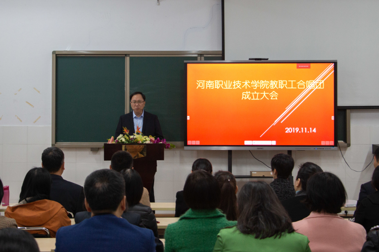 “荷尽已无擎雨盖,菊残犹有傲霜枝。一年好景君须记,最是橙黄橘绿时”。初冬,展现在人们面前的是向上,奋进,争先;在这美好的季节,经过一个多月的紧张筹备,11月14日晚7点,河南职业技术学院教职工合唱团在音乐学院B101教室召开了成立会议,并进行第一次授课。会议由旅游学院院长陈佳平教授主持,邵芙蓉副院长和工会夏喜利主席出席会议。