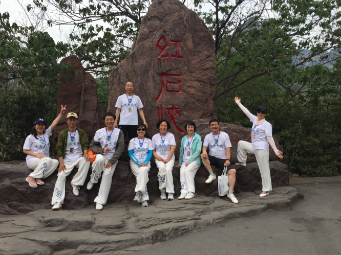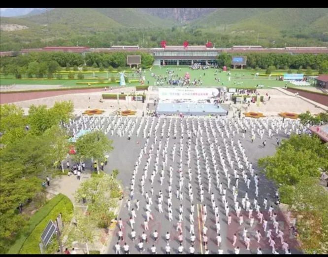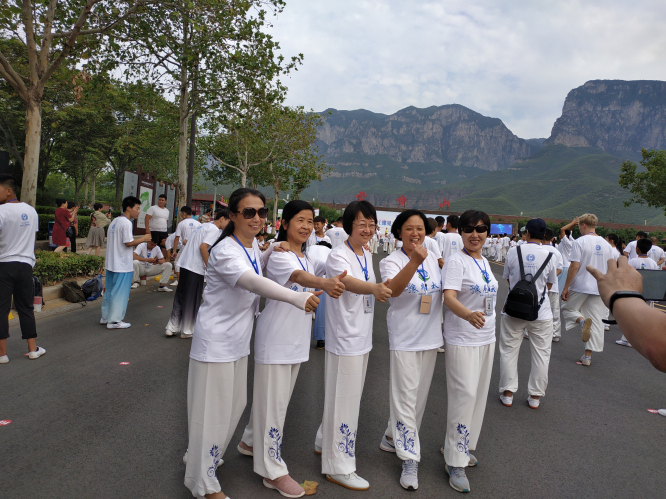 我院太极协会应邀观摩,2019年6月15号晨5时,我校张北,王文,王智洲,张文丰,葛守峰,袁世先,邓小君,杜馨,李卫红,张文平等十人,与其它高校及社会各界太极拳爱好者一行53人赴云台上参加"豫见太极"千人大赛。