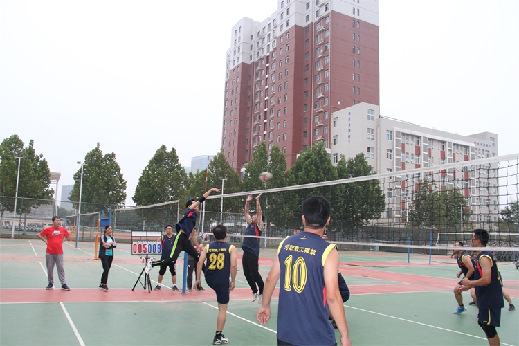比赛现场,气氛热烈。双方势均力敌,老师们一改三尺讲台上的严肃神情,每球必争,你来我往,难分上下,不时打出精妙配合和精彩救球,双方队员各施绝技,一个个精彩扣球,拦网,队员们互相配合,相互鼓励,积极配合,奉献了一场精彩绝伦的比赛。经过激烈争夺,机关联队以三比零战胜二级学院联队,获得比赛胜利。排球对抗赛赛在和谐又不失激情的氛围中落下帷幕。排球赛不仅是一项竞技活动,更增强了队员间、院系间的友谊。排球青春,友谊长存!通过比赛,教职工之间的球技得到了交流与沟通,丰富教职工的文化生活,缓解广大教师的职场压力,进一步提高教职工的身心健康,加强同事之间的感情交流,相互融入了一个非常和谐的大家庭中,校园文化得到了一定提升。丰富了校园文化生活,也体现他们奋勇拼搏,不轻言放弃的良好体育精神面貌,其实输赢并不重要,重要的团结,协作的精神,和永不放弃的毅力,充分地展示了良好的体育竞技水平,更好地诠释了体育精神,我运动,我健康,我快乐”的健身氛围正在全院形成。(供稿:张军,审稿:赵燕军)