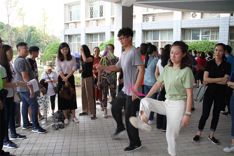 为丰富我院广大教职工的文化娱乐生活,促进学院发展与传统节日文化相融合,开展省级文明单位创建,9月13日下午,院工会在图书馆前广场举办了教师节教职工踢毽子比赛,17个分工会近700名教职工参加比赛。