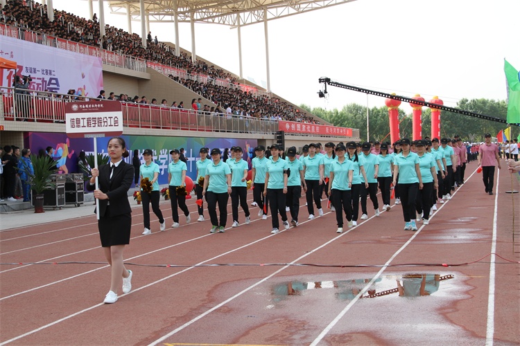 4月26—27日我院第十一届田径运动会暨教职工趣味运动比赛分别在学院运动场举行。全院教职工以分工会为单位组成17个方队,统一着装参加开幕式入场、开幕式和闭幕式。这次趣味运动比赛参赛教职工达1145人次。学院全体领导参加了定点投篮比赛。