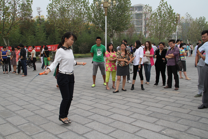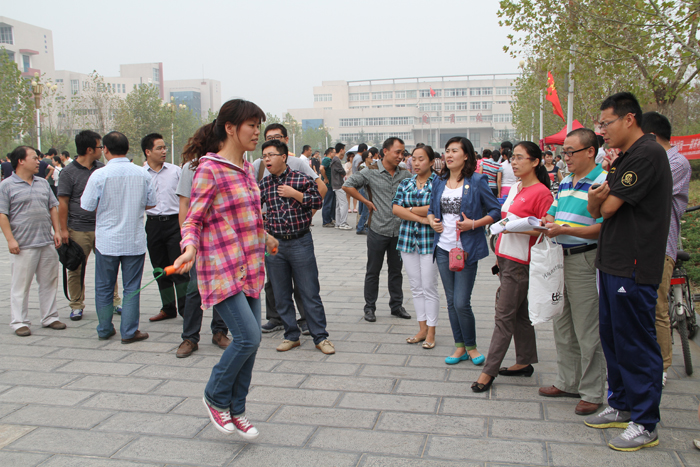 为活跃教职工业余文体生活,增强体质,9月23日中午,院工会在学院图书馆前广场举办了迎“十一”教职工跳绳比赛。共有17个分工会的605名教职工参赛。