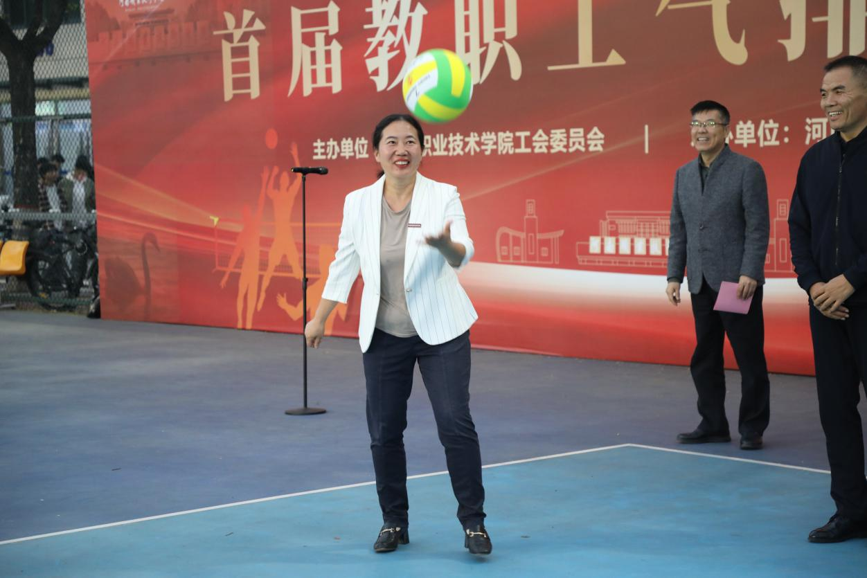 开幕式上,全体肃立奏唱国歌。田华副书记致辞,代表学校党委和行政对比赛的举办表示祝贺,并向筹备赛事的校工会、教职工排球协会及全体工作人员表示感谢。她指出,气排球运动集趣味性、竞技性和团队协作于一体,深受教职工喜爱,其团结拼搏、永不言败的精神与职业教育育人理念高度契合。她希望全体教职工将赛场上的拼搏劲头转化为爱岗敬业、奋发有为的动力,共同为学校“新双高”建设和申办本科层次职业大学贡献力量。