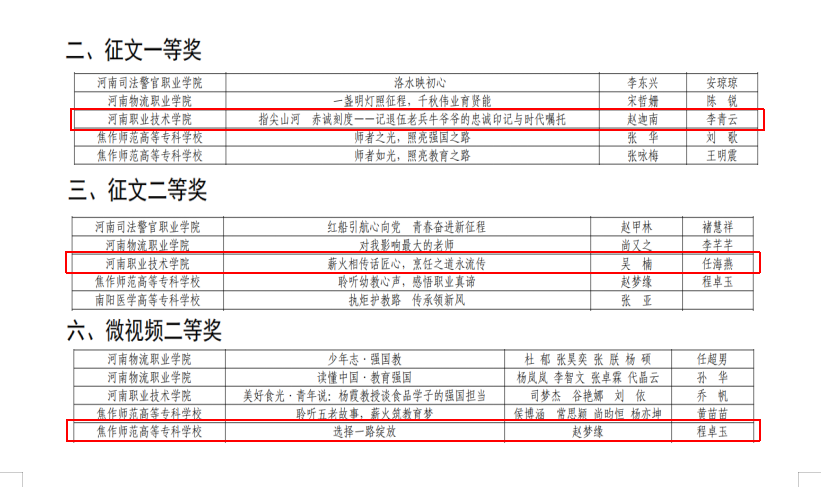 其中,赵迦南同学撰写的《指尖山河赤诚刻度——记退伍老兵牛爷爷的忠诚印记与时代嘱托》(指导老师:李青云)获征文一等奖;吴楠同学的作品《薪火相传话匠心,烹饪之道永流传》(指导老师:任海燕)获征文二等奖;司梦杰、谷艳娜、刘依同学创作的微视频《美好食光·青年说:杨霞教授谈食品学子的强国担当》(指导老师:乔帆)获微视频二等奖。