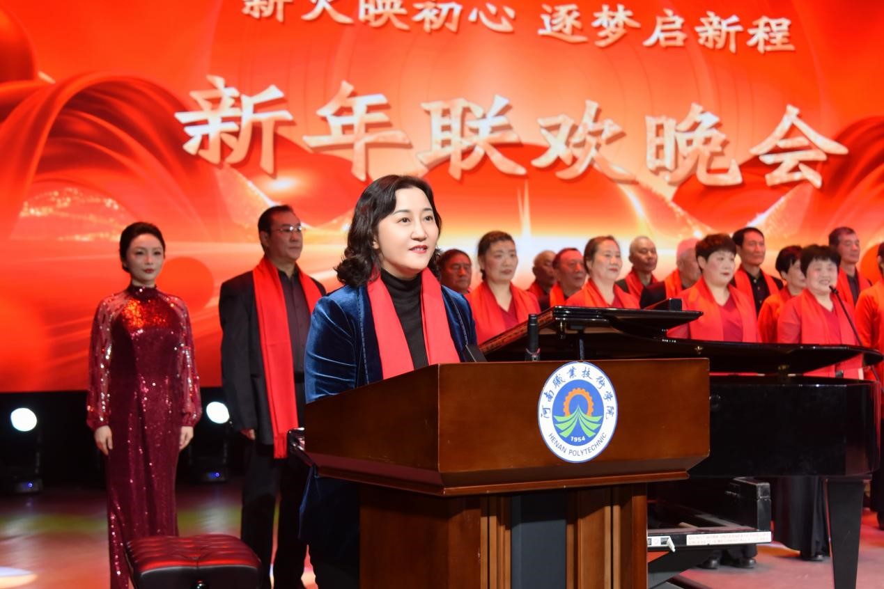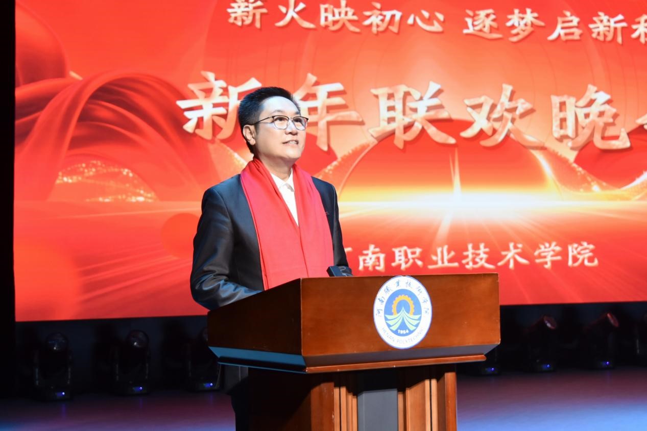 夏新颜在致辞中深情回顾2025年全体河职人同心致远、步履铿锵奋斗历程,并对学校在各领域取得的丰硕成果表示高度肯定。夏新颜指出,回望2025年,学校主动响应国家对职业教育的新期盼,全面聚焦“两高四着力”重大要求,坚持内涵发展、特色赋能,在立德树人、教育教学、人才培养、社会服务等各领域取得丰硕成果。每一项成绩的取得,都离不开全体河职人“勇于担当、敢拼敢闯、永不服输、追求卓越”的奋进精神。展望2026年,山河远阔、征程璀璨,期待全校上下拿出跃马扬鞭勇气、激发万马奔腾活力、保持马不停蹄干劲,一起为梦想奋斗、为幸福打拼,把宏伟愿景变成美好现实,奋力建设对河南经济社会发展有突出贡献的高水平职业院校,为谱写新时代中原更加出彩的崭新篇章贡献“河职力量”。