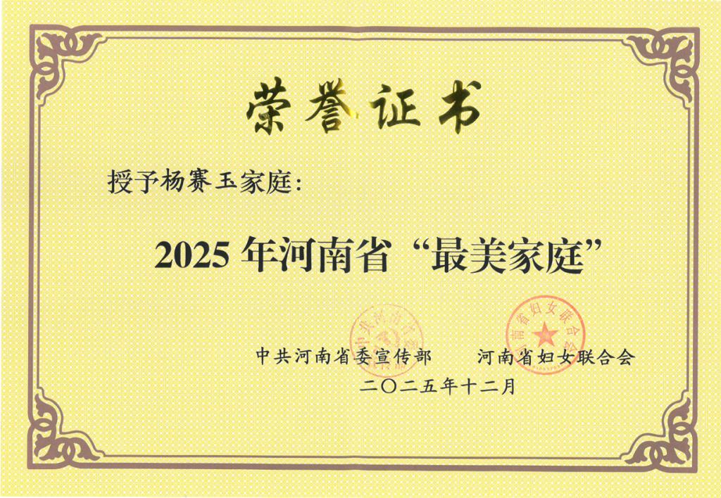 近日,河南省委宣传部、省妇联联合公布了2025年河南省“最美家庭”名单。学校音乐学院教师杨赛玉家庭荣获此项省级荣誉。