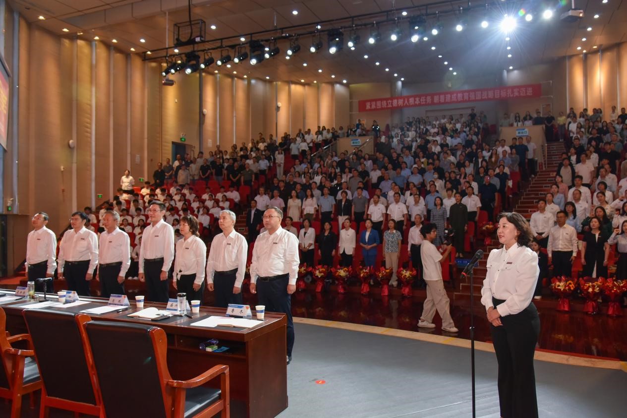 9月10日上午,学校在音乐厅隆重召开庆祝第41个教师节表彰大会,表彰为学校发展作出贡献的先进集体和个人,并向全体教职员工致以节日问候和崇高敬意。校领导厉励、夏新颜、肖珑、李玉峰、盛兴文、任枫轩、鲁冬出席会议。学校副科级及以上干部、受表彰教师代表及部分师生代表参加会议。校党委委员、副校长朱永宽主持会议。