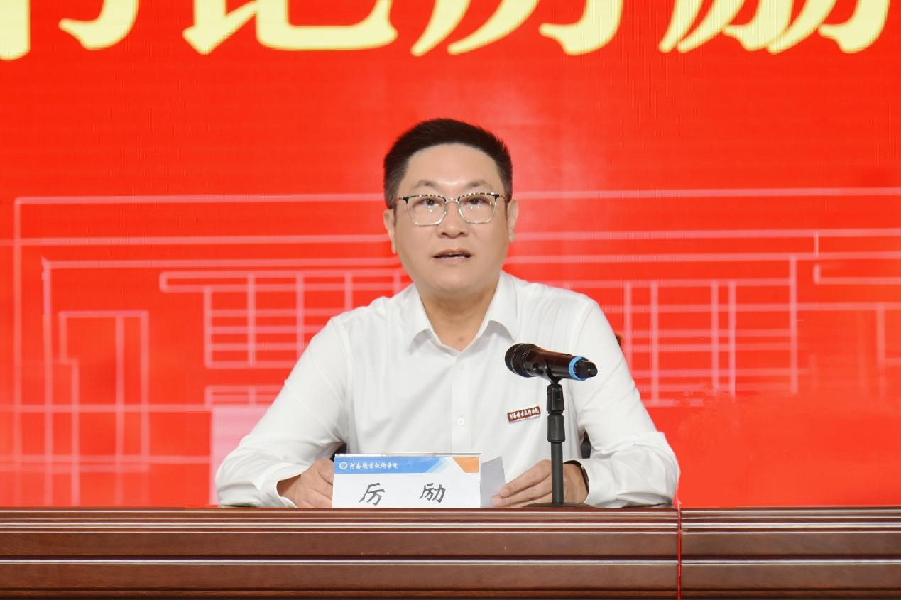厉励指出,近年来,学校坚持“人才强校”战略,抢抓教师“第一资源”,建立教师发展中心,持续完善师德师风建设、绩效考核及职称评审等制度文件,积极推动人才队伍提质增量,取得显著成效,广大教职工心更暖、气更顺、劲更足。就进一步激励广大教职工传承教育家精神,以实干担当谱写教育强国建设新篇章,厉励提出三点要求:一是立足时代征程,担当为国育人“大使命”。广大教师要做强国崛起的筑梦人、学生成长的引路人、学校发展的硬支撑,用实际行动谱写教育强国建设华章;二是淬炼能力作风,争做擎旗领航“大先生”。广大教师要讲政治、有情怀、精专业、勇担当,力争产出更多标志性成果,用实际行动推动学校高质量内涵式发展;三是凝聚协同合力,全力建优成长“大环境”。学校以最强领导绘就“战略图”,以最实举措铺就“成长路”,以最优服务营造“生态圈”,努力增强每一位教师的归属感、成就感和幸福感,构筑近悦远来的优良生态,共同书写新时代河职高质量发展高效能治理高水平安全的壮丽答卷,为奋力谱写中原大地推进中国式现代化新篇章作出新的更大贡献。